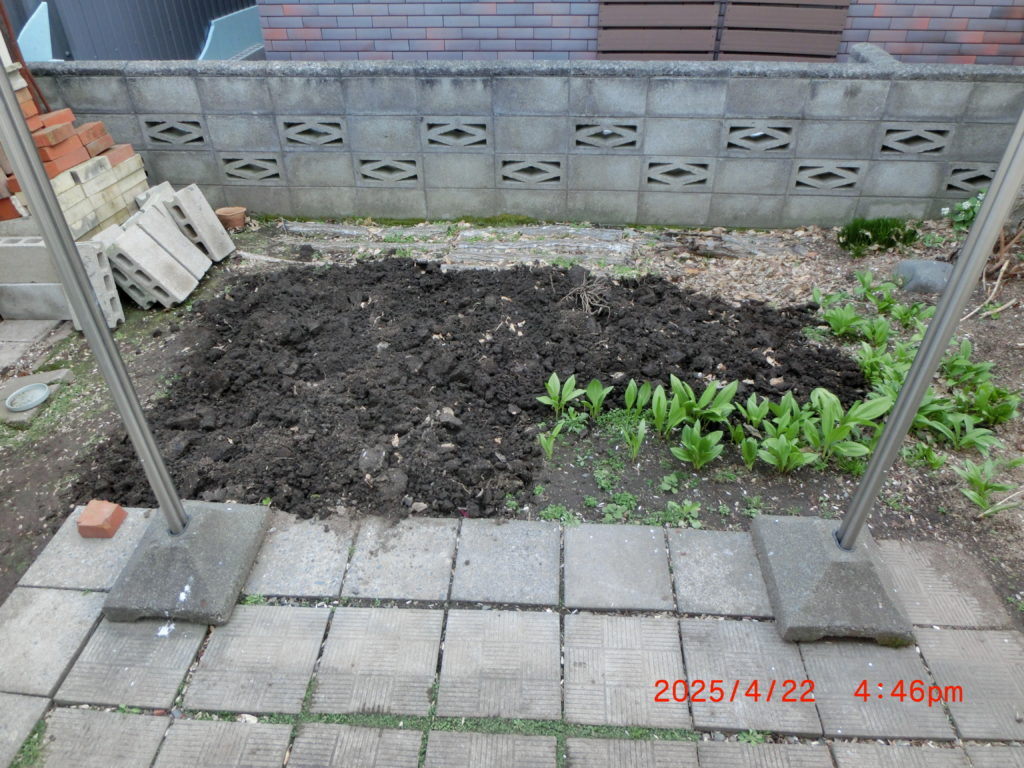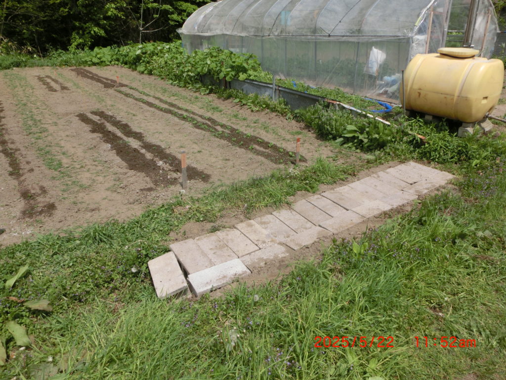 5月10日 猫の額ほどの庭ですが、今年はここに苗ものを植えました。日当たりもいまいちですが、仕方がないです。北広の畑は日当たりは良いけど、持って行く人もいるので。アライグマの被害も大きいです。