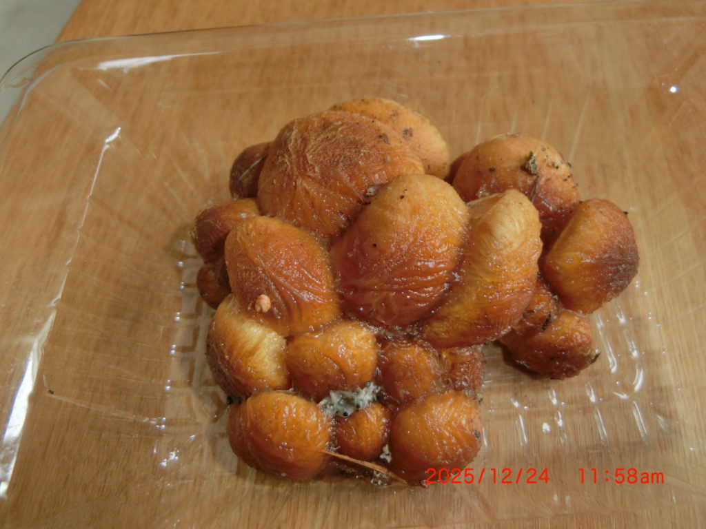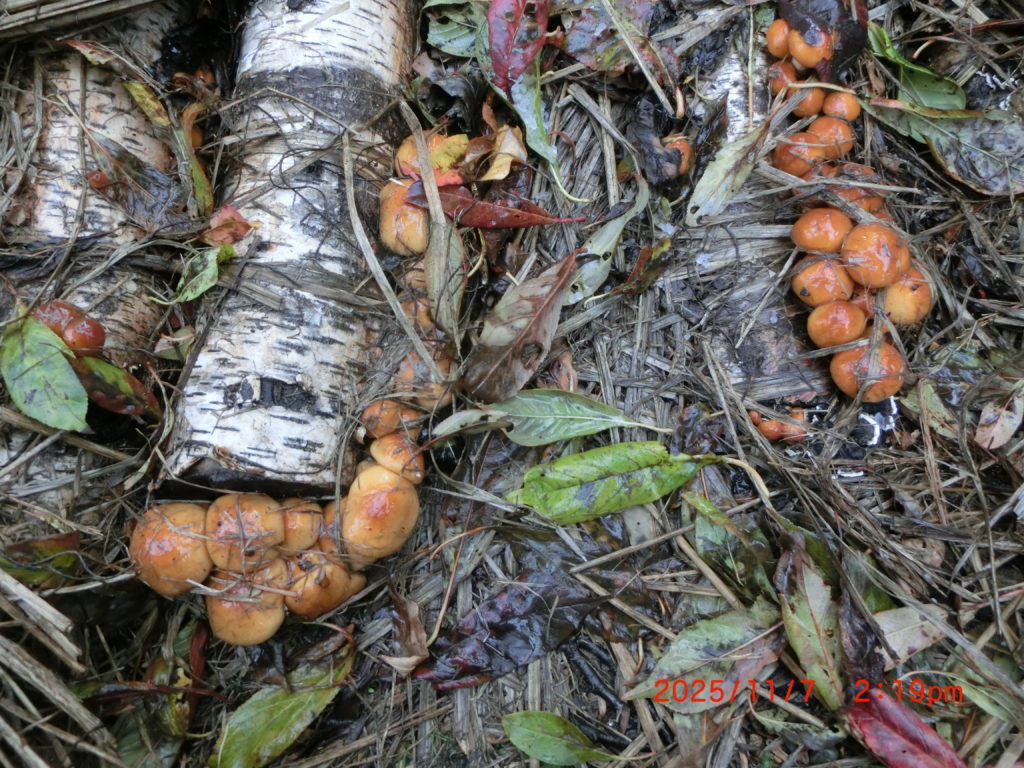 11月27日ほんとに今年最後のなめこの収穫です。ありがとう。楽しめました。今日採れたものは冷凍保存します。毎朝見に来るだけでも楽しいですね。自然の恵みに改めて感謝です。雪が積もらないのと雨が降るのですから。なんだかんだと、1か月間収穫を楽しめました。このなめこは野幌の友人に差し上げました。今年最後の収穫です。なめこそばはとてもおいしかったですね。