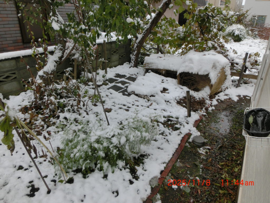11月16日 明日は午前中に雨が降るので、午後にでもなめこを収穫しようかな。最後になるかもしれません。雪の季節到来です。11月2日からなめこは楽しみました。まだ1kg以上ありますので、しばらく楽しめますが、さらに雪が降りましたので、収穫できるかどうか。