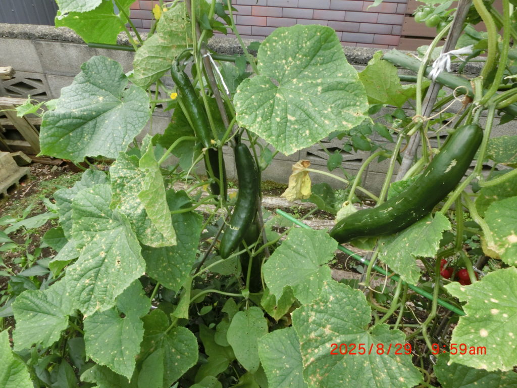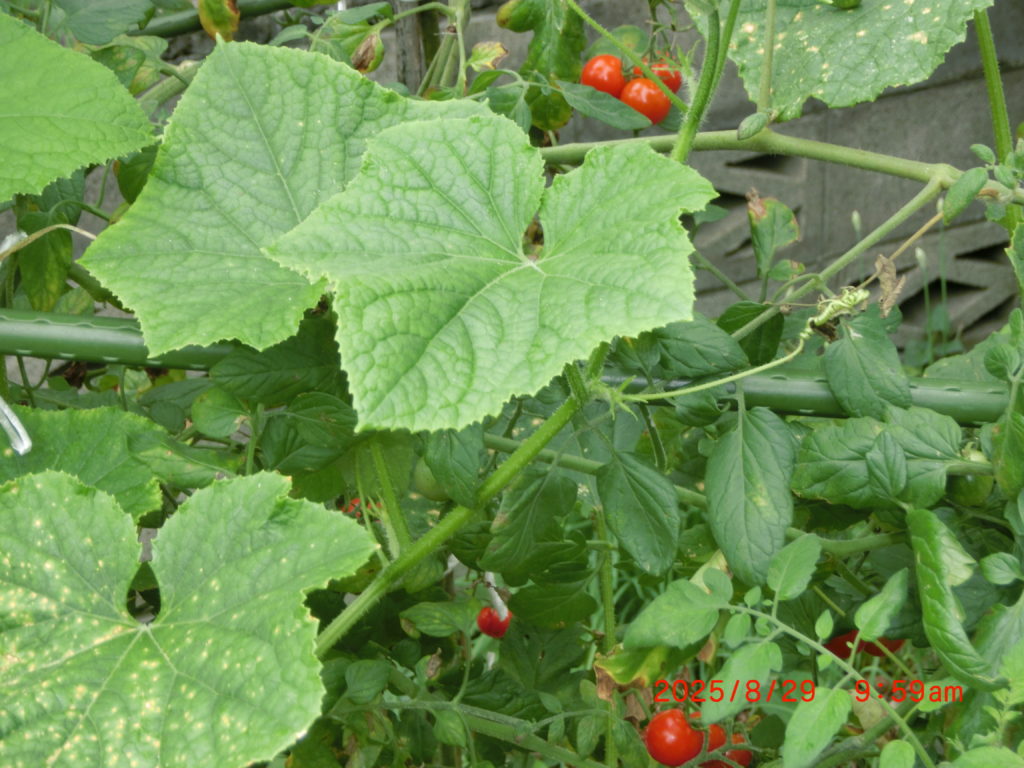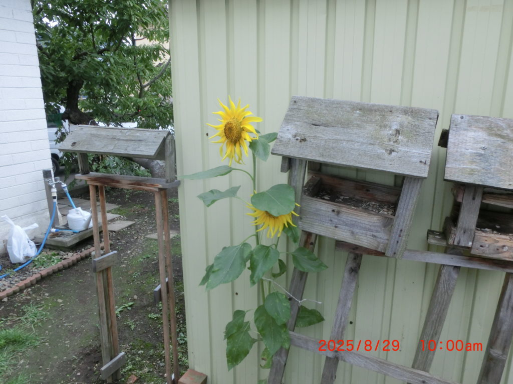 8月29日 今朝は自宅の畑です。猫の額ほどの畑にはキュウリやトマト、ナスビがまだ実っていますが、今年は北広の畑でキュウリ、ナスビ、ピーマンが良くできました。ピーマンは最後に一度取りに行かないといけないです。キュウリは食べきれなくて、煮たりいろいろ工夫をしました。毎日食べるとおなかが緩くなります。ブルーベリーはあまりよくできていないので、そのままです。ヒマワリはリス用の種が所々で育って、花を咲かせています。小さな種はかわいらしい花を咲かせますが、大きな種は巨大化して、咲いています。