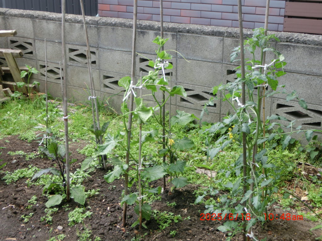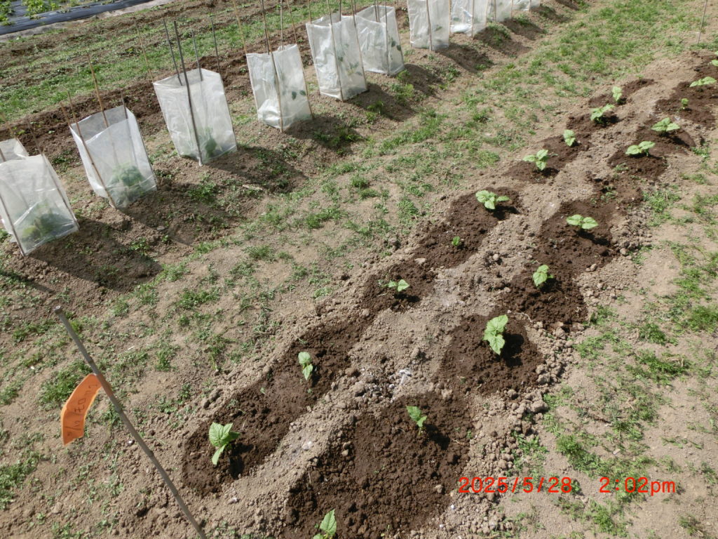 5月20日 今日もいい天気です。余った場所に今年はトマトやズッキーニ、ピーマンを植えました。来年には裏の畑は返却するつもりですので、今年から準備に入ります。昨年は豆類をたくさん作りましたので、少し違う展開を模索します。畑の端は秋にはイチゴを植えようかと。