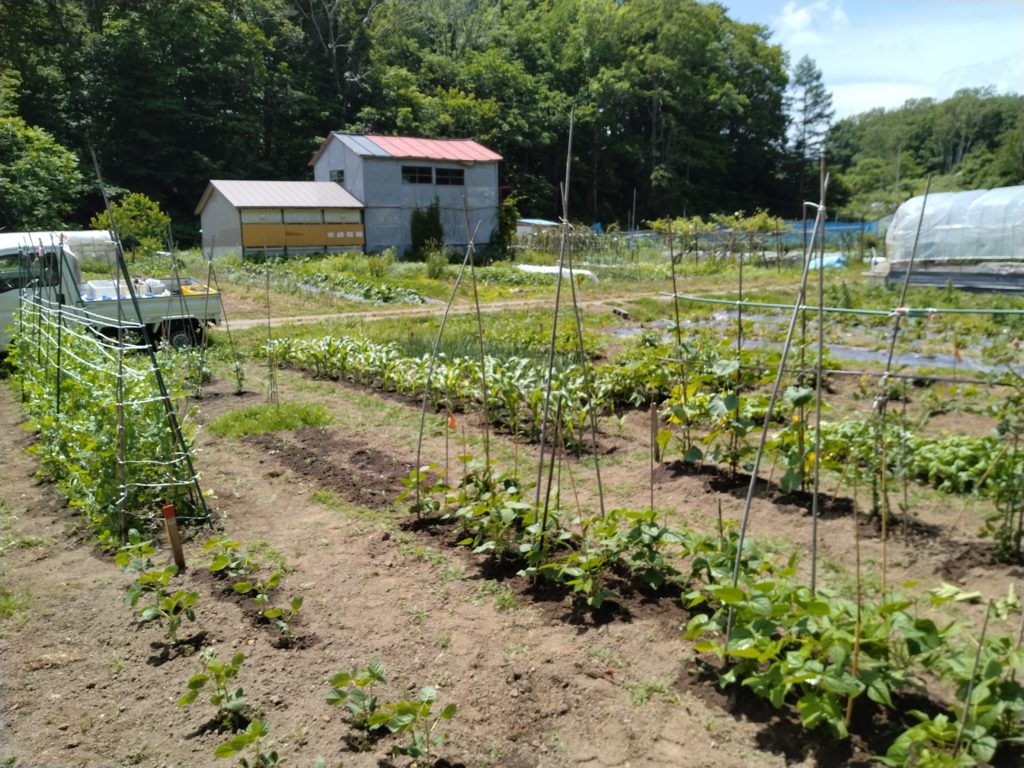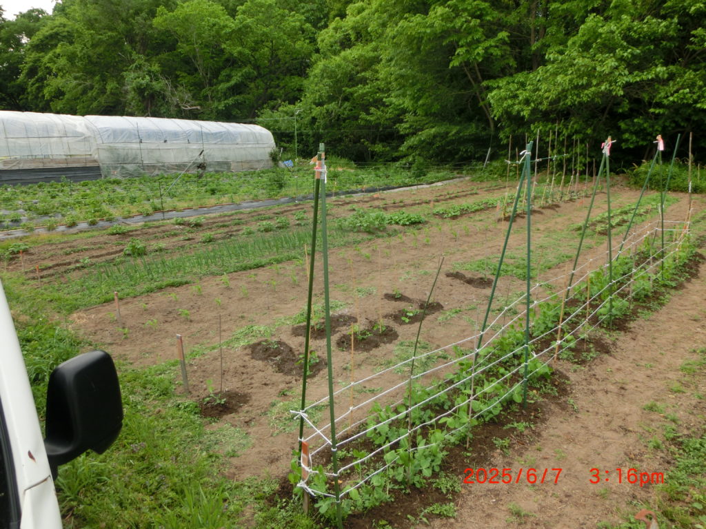 6月14日(金)今日は北広島の畑に行って、除草作業や竿立てなどの作業をしました。