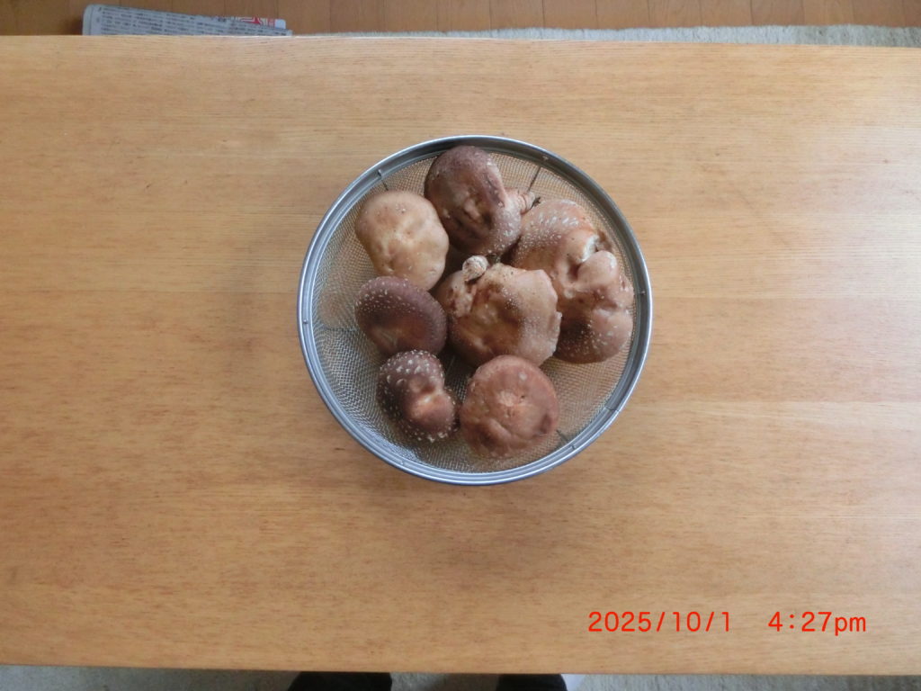 10月1日 10月になりましたが、なんとなく天気が悪く、生暖かい日が続いています。シイタケには良い環境ですね。もう少し採れるかな。