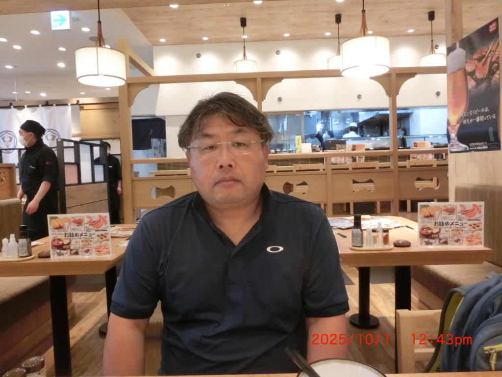 10月1日 今日は札幌で卒業生のHO君と昼ご飯を食べました。前回会った時には札幌駅で別れるときに写しましたが、今回は忘れる前に食事の時に写しました。彼は相変わらず笑顔は出てきませんでしたが、考えてみたら僕も笑顔は出ない人間で同じタイプかもしれませんね。今度車で卒業生のところ(倶知安)に行こうかと、相談しました。今のところ11月6日に決まりました。