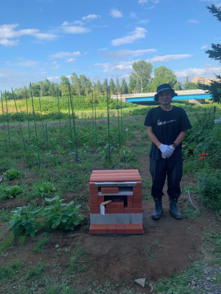 今朝は昨日使用したピザ窯(野幌公民館)を「えみくる」に設置に行きました。そうしていると、すぐピザ窯を使いたい方が来て火をつけだしました。ベトナムの方々も9人こられて、ピザ作りです。すごい!まだまだ需要があるんですね。写真は「えみくる」提供