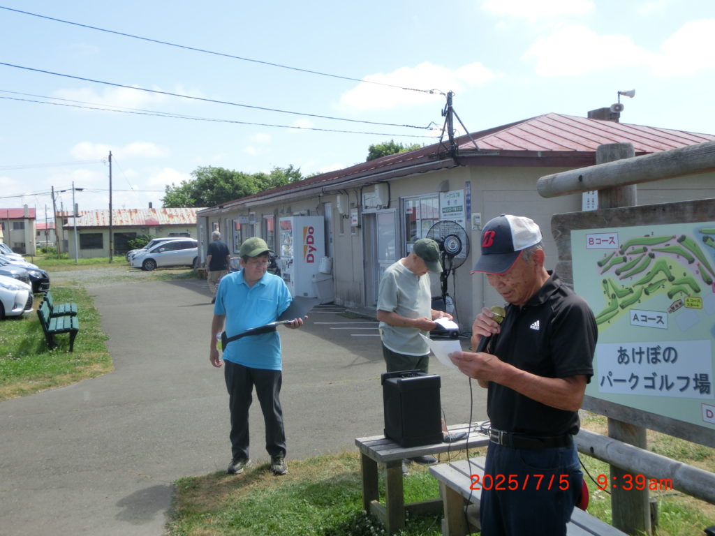 7月5日 今日はパークゴルフの日です。あけぼのパークゴルフ場で開催されますので、僕は受付業務と終わった後の表彰や懇親会の準備もあります。僕自身はパークゴルフはしないので、試合の中身はわかりませんが、一日お付き合いをすることになりますね。気温31度になる予報ですので、皆さんの熱中症にも気をつけないといけないです。その後の懇親会ではホールインワンの方が4人もおられて、びっくりですね。皆さんのエネルギーには脱帽です。