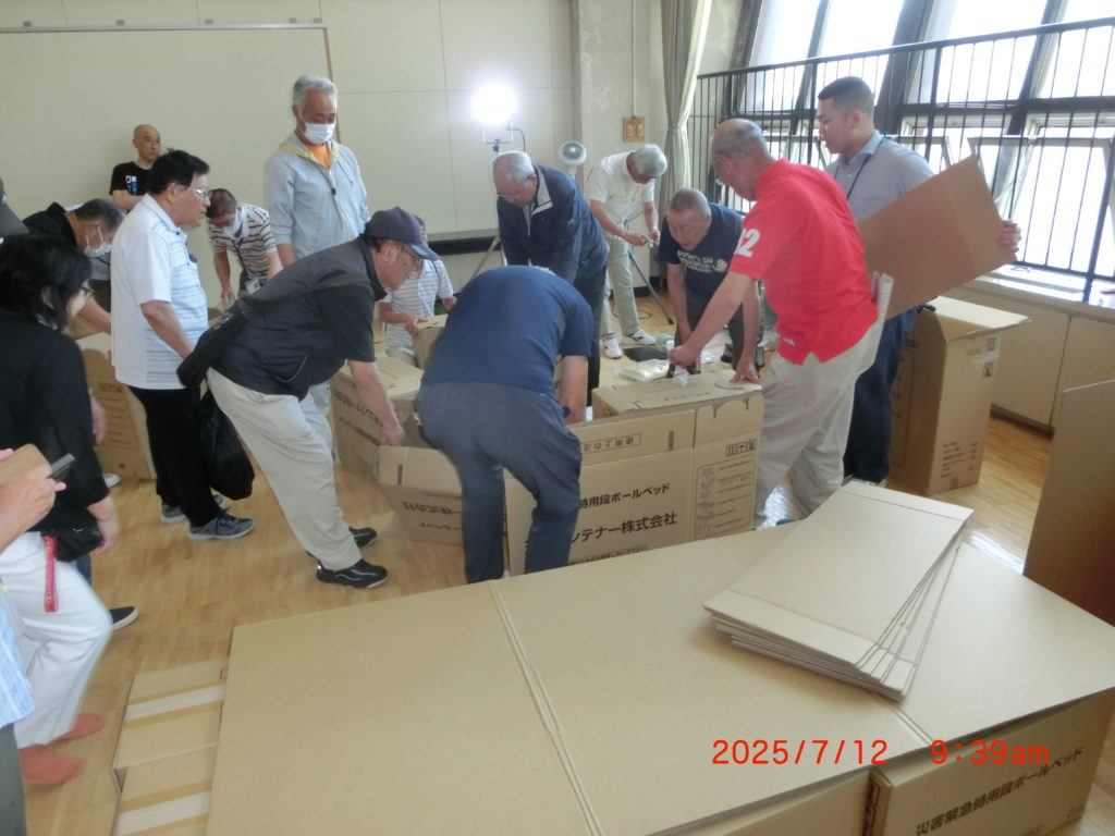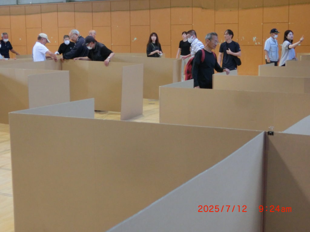 7月12日 今日は大麻体育館で防災訓練をしました。昨年もやっているので、わかっていますが、訓練に参加しました。