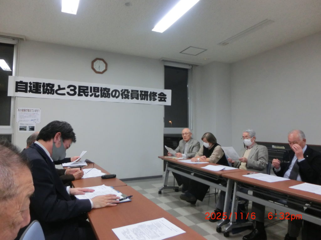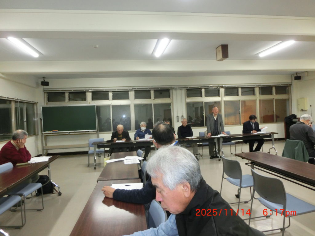 11月19日 今日は第二住区自治連の役員会がありました。毎月一回の会議です。風邪が流行っているみたいで、役員の方が2名欠席です。皆さん気をつけましょう。