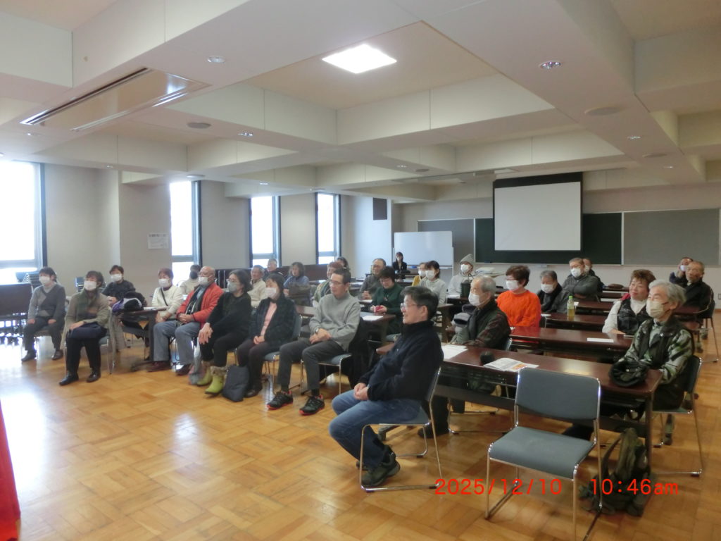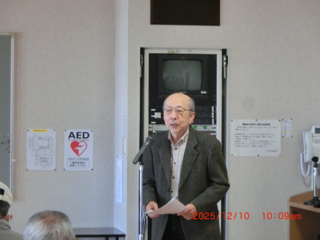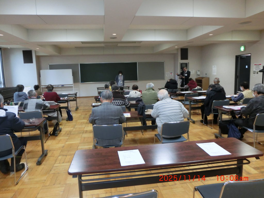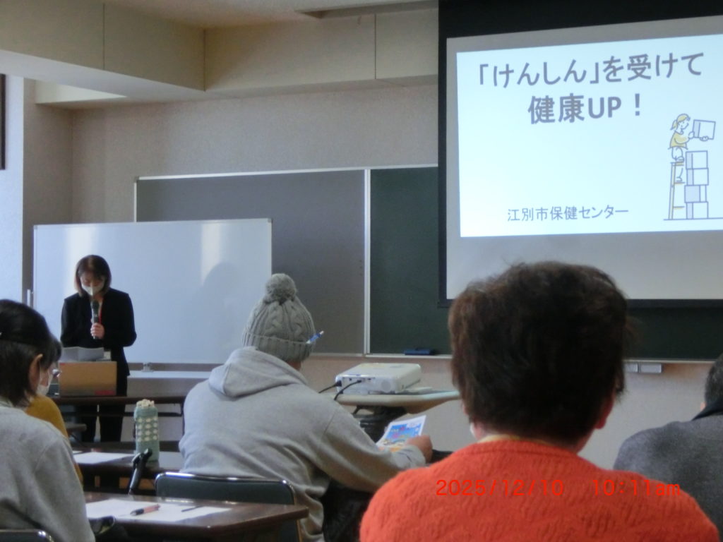 10月17日 今日は「国民健康保険について」江別市役所の方が説明に来られました。制度そのものの説明と将来の保険証そのものの廃止とマイナ保険証の説明をされました。皆さんの関心の高さもわかりました。