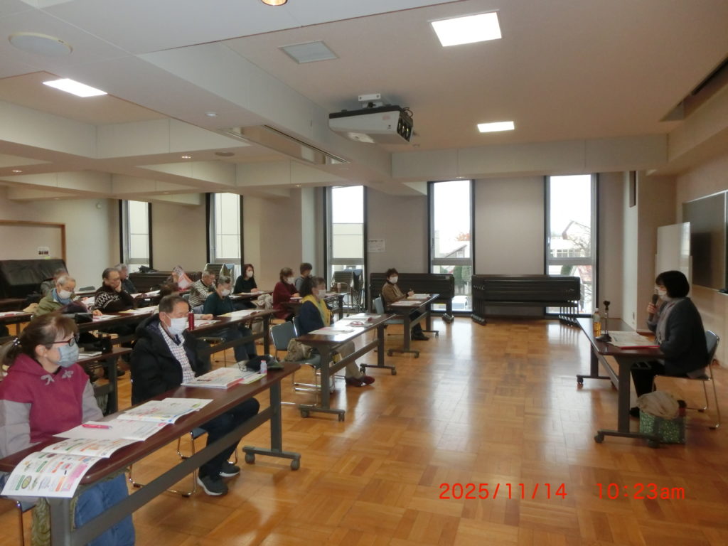 2月23日 今日は第二住区主催の講演会がありました。酪農学園大学の小林道 准教授の「バランスの良い食事」について1時間半の講演でした。30名程度の参加者でしたが、皆さんとても熱心にお話を聞いておられましたね。