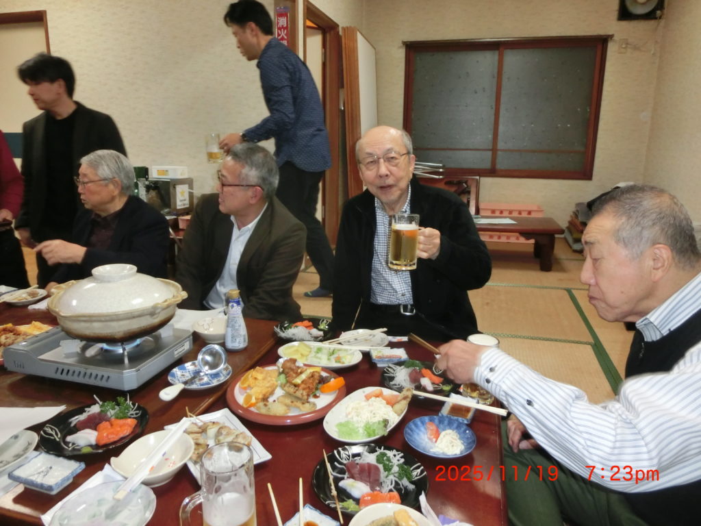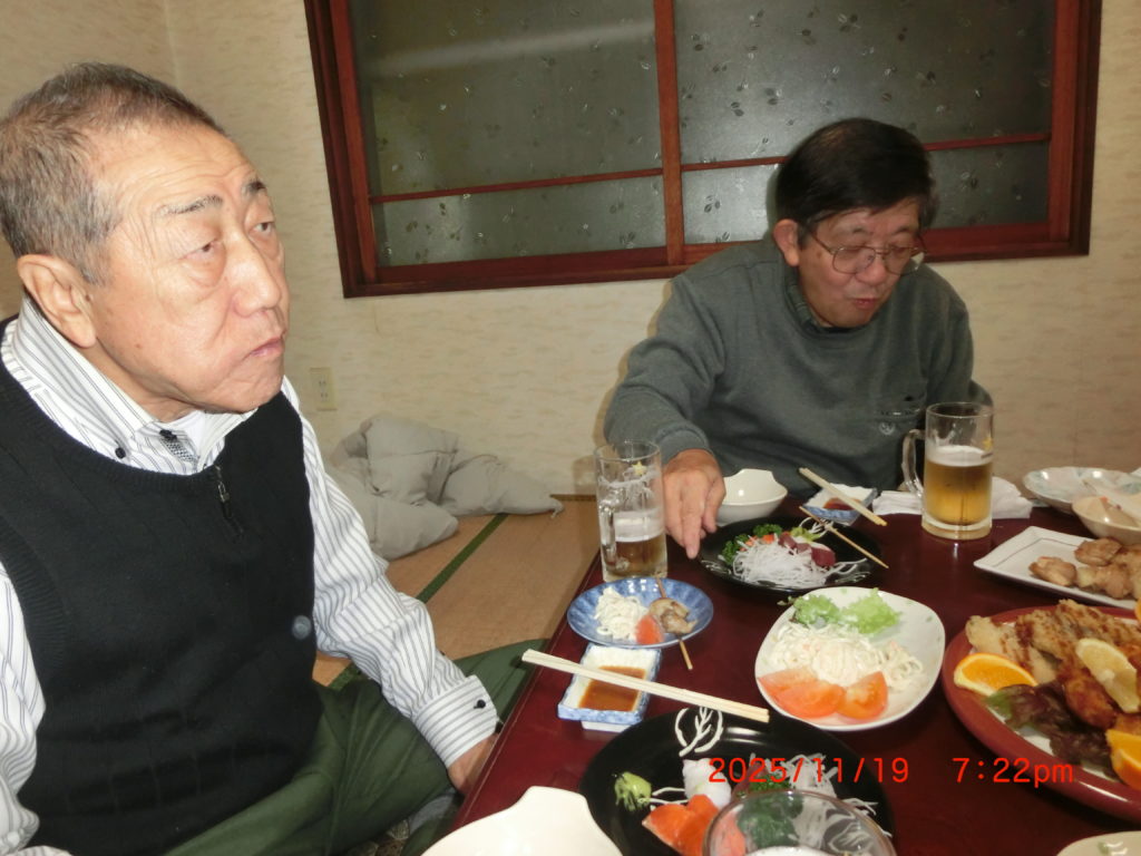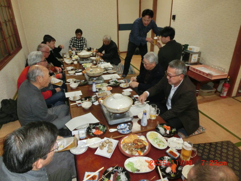 1月20日 今日は役員会があり、次年度に取り組むべき課題について意外と深い議論と時間を過ごしました。会議の後は 役員会のメンバーで会費制で懇親会です。今回は取り寄せたオードブルの他に役員の方がたち汁をふるまうというサプライズがあり、暖かい料理で皆ほっこり!楽しい時間を過ごすことができました。会議では触れ合うこともなかった個人情報も得られ、互いに実生活の苦労話を聞くことによって相手に対し改めて尊敬の気持ちを強くしました。なにより、座ってお話ができたことが良かった。