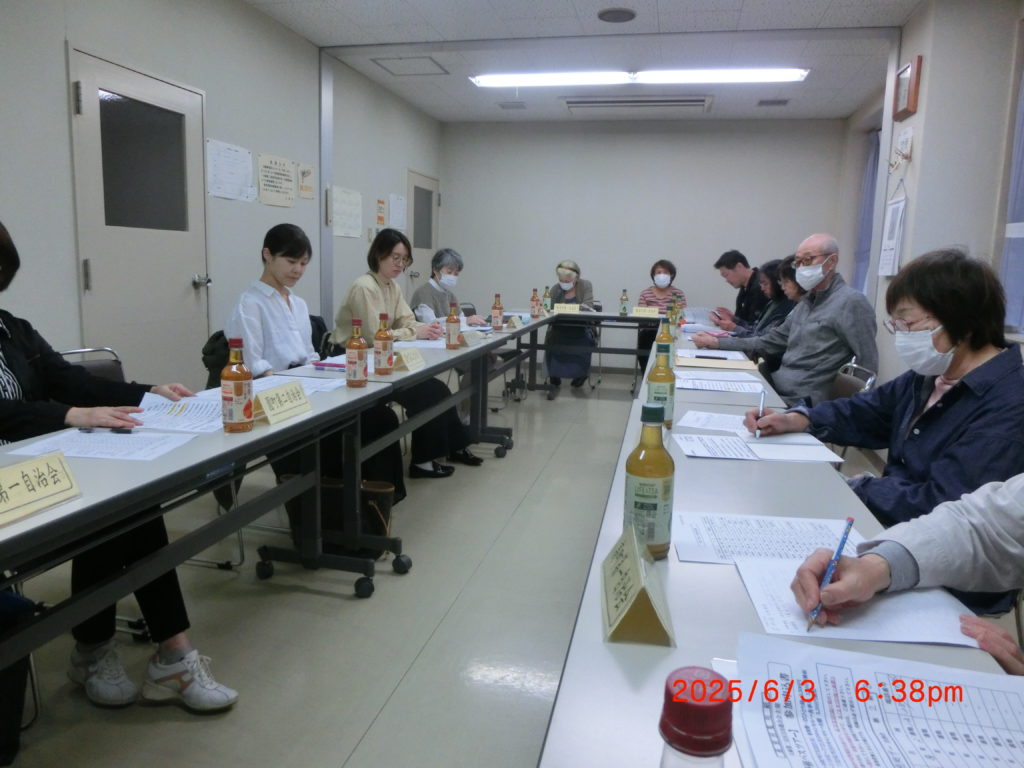 6月12日 今日は年に一度の文化広報部会が開催されました。18自治会の会長さん、文化広報部などの関係者が集まり、年4回発行される「広報」の役割分担について話し合われました。