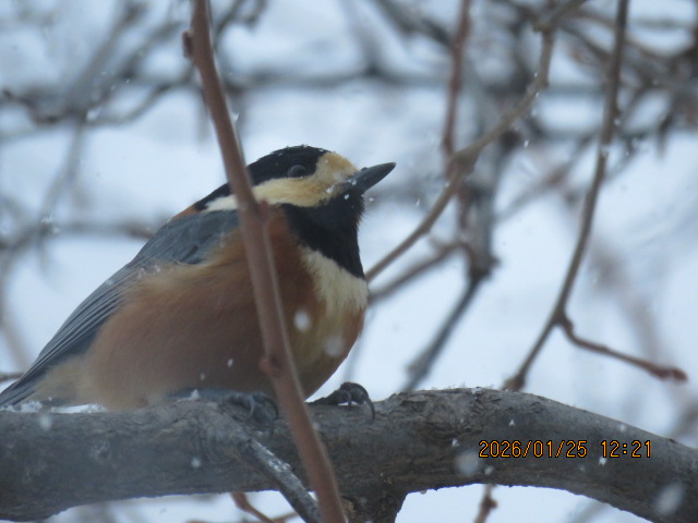 1月25日 大雪ですが、自宅には野鳥がたくさん来ます。ハイタカも来たようで、またしばらくはスズメ、シジュウカラ、ゴジュウカラ、ヤマガラ、シメ、ヒヨドリ、はなんとなく近くで共存しています。彼らにとっては非常事態ですのでそうするしかないですね。