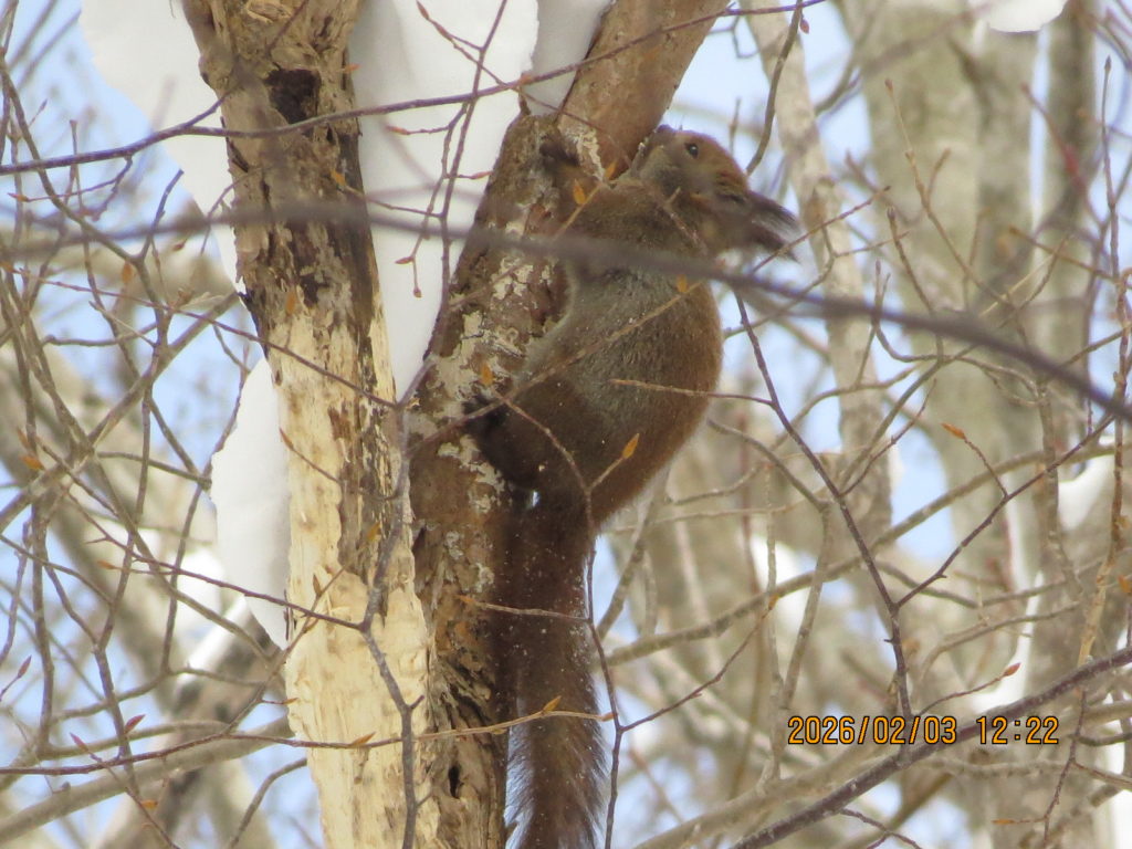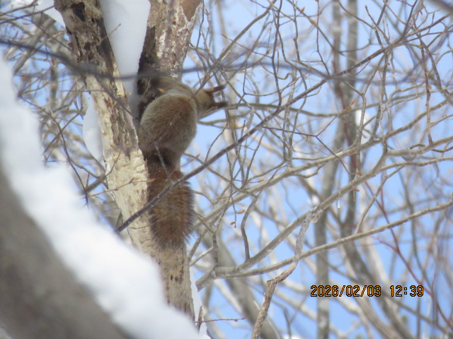 2月3日 今日は久しぶりに野幌森林公園を歩きました。最近雪が良く降りますので遊歩道も狭かったのですが、大沢口から桂コースを歩き、大沢の池に行く交差点あたりでリスに会いました。そのまま大沢コースを歩いて戻ってきました。鳥は見ませんでしたけど。7,680歩