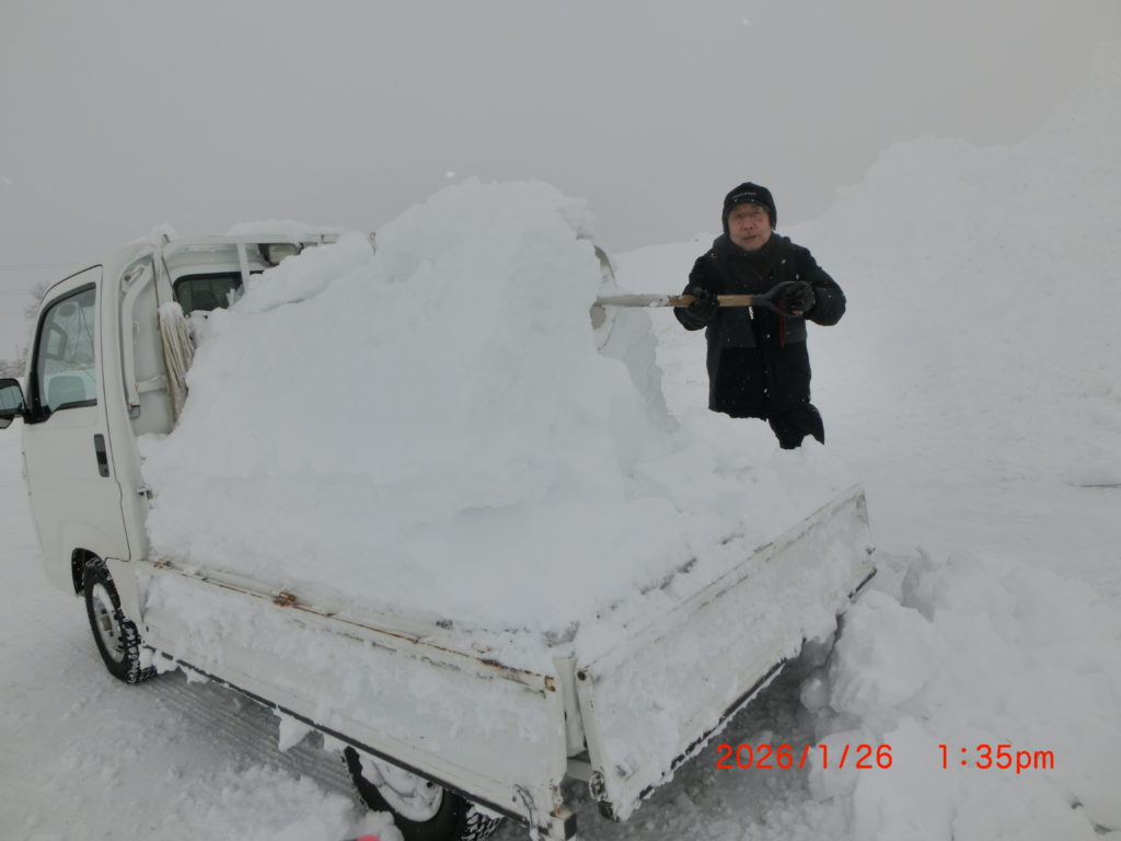 1月22日 毎日よく雪が降ります。今日は20㎝くらい降りましたので、夕方に雪を捨てに行ってきました。何年間はほとんど降らないことが多かったんですが、今年はとめどなく降る年です。